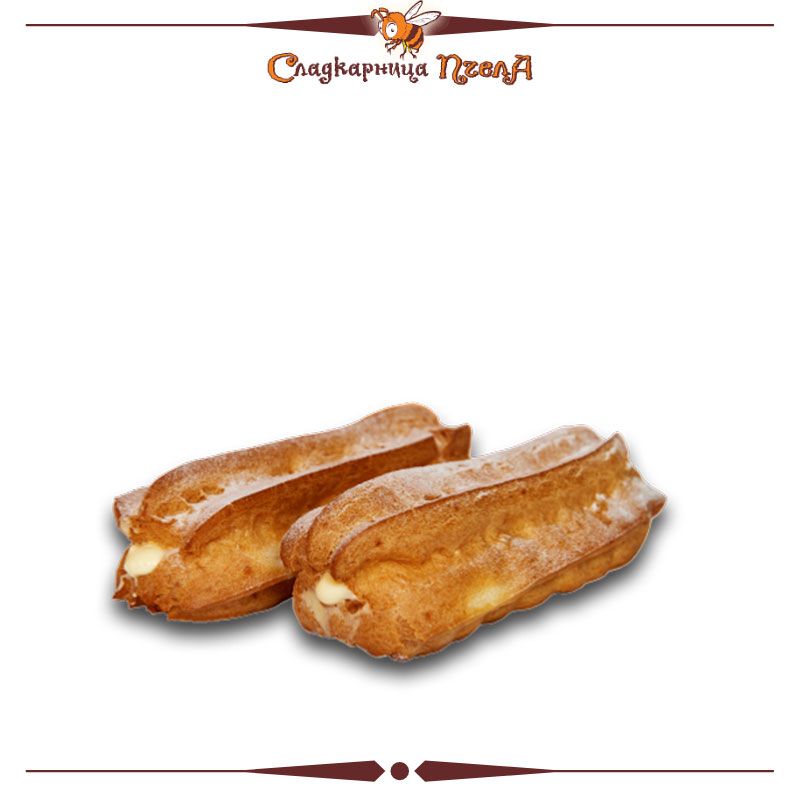 Потопете се в изисканата сладост на нашия еклер – десерт, създаден по традиционна рецепта, която гарантира неповторим вкус и качество. Във всяка хапка ще усетите ефирния и нежен яйчно-млечен крем, който се разтапя в устата, съчетавайки съвършен баланс между лекота и сладост. За финален акцент еклерът е деликатно поръсен с пудра захар, придавайки му елегантен завършек.