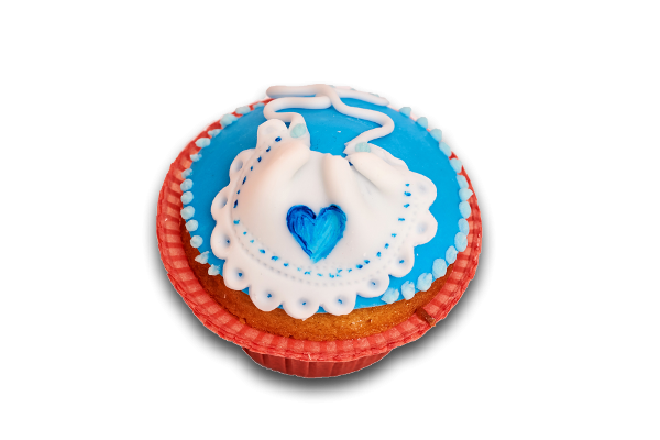 Ванилов мъфин със захарна декорация от фондан. Размер на мъфина: 60/70мм, тегло без декорация 45гр,