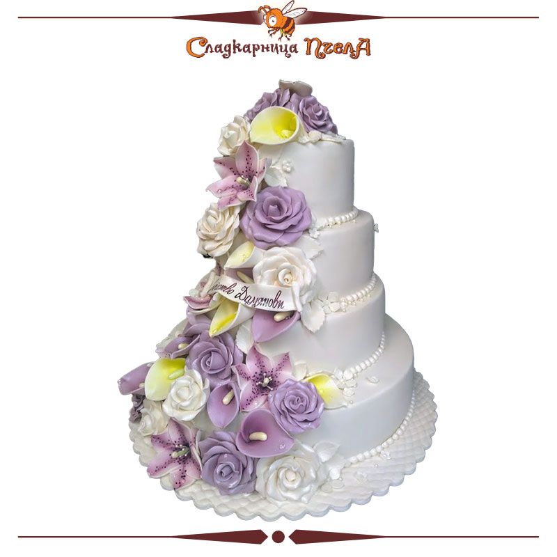 Показаната торта е на 4 етажа и е за 80 парчета.