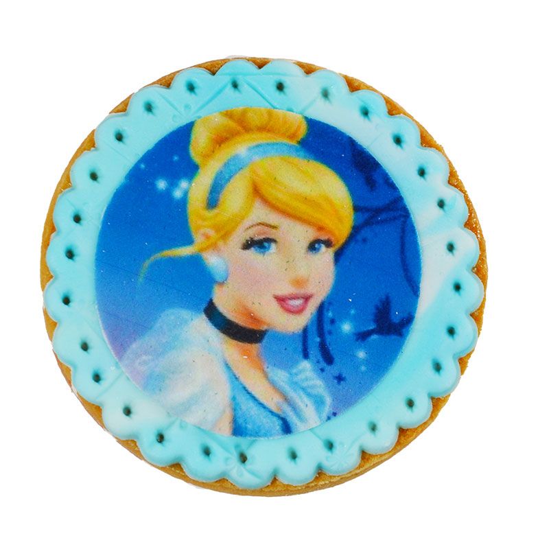 Фото бисквитка с краве масло и фонданова декорация. Диаметър 7,5 см. Всяка бисквитка се опакова индивидуално в целофаново пликче.