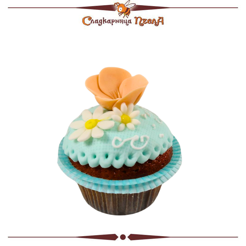Ванилов мъфин със захарна декорация от фондан. Размер на мъфина: 60/70мм, тегло без декорация 45гр