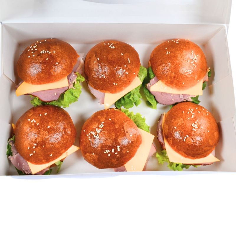 ✓ 12 малки, ръчно изработени сандвичи ✓ Меко, пухкаво бриош хлебче за основа ✓ Пълнеж от свинско филе, кашкавал и млечно масло ✓ Свежи сезонни зеленчуци (айсберг, червена чушка) ✓ Ръчно оформени с грижа за детайлите ✓ Практична парти кутия за лесно сервиране ✓ Идеални за закуска, обяд или бързо почерпване