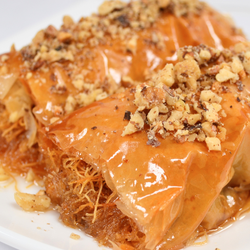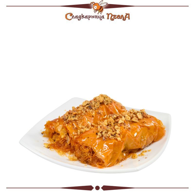 Фини кори, преплетени с хрупкав кадаиф, създават изящна текстура, която се топи в устата. В сърцевината ѝ се крие богата плънка от едросмлени орехи, носеща топъл и дълбок аромат. Всеки слой е внимателно сиропиран, за да постигне перфектната сочност, която завършва вкусовото удоволствие.